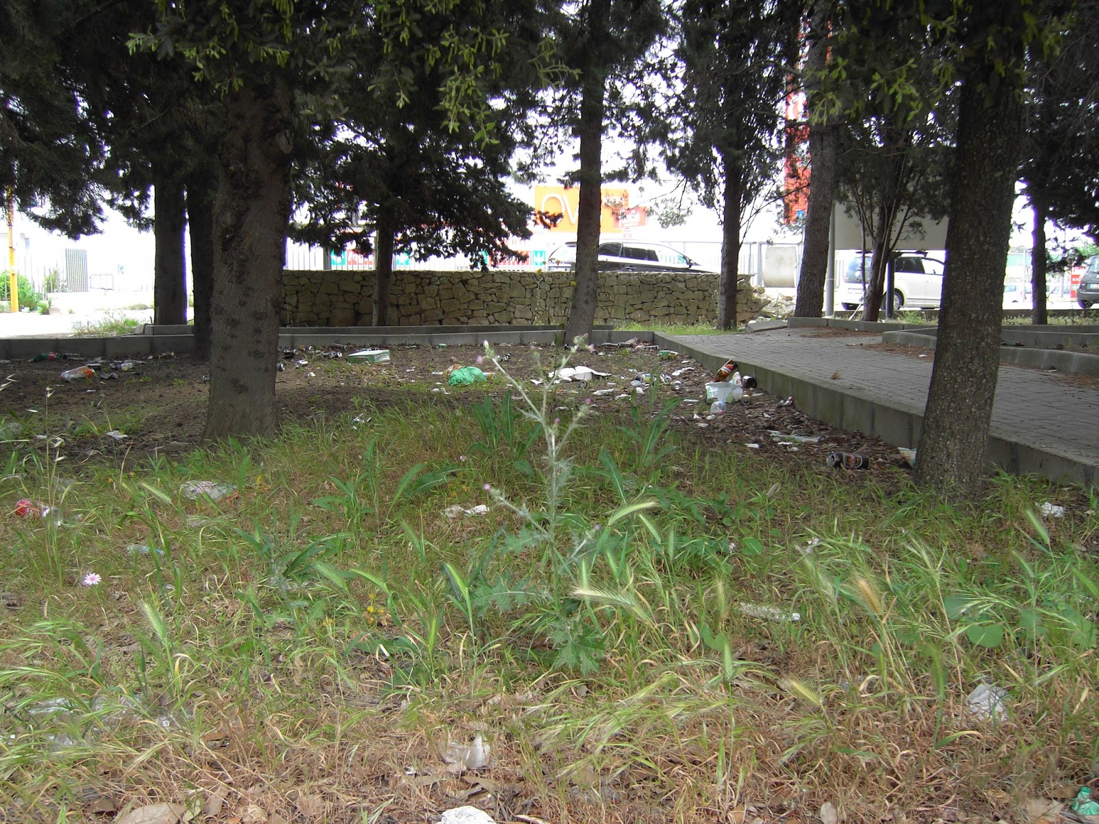 La pineta versa in uno stato di completo abbandono, con erbacce, varia spazzatura, bottiglie ed un pezzetto di muretto su Via Carovigno che è letteralmente crollato. Non è certamente un bel vedere per chi entra in città o chi posteggia il proprio veicolo il lunedì mattina.